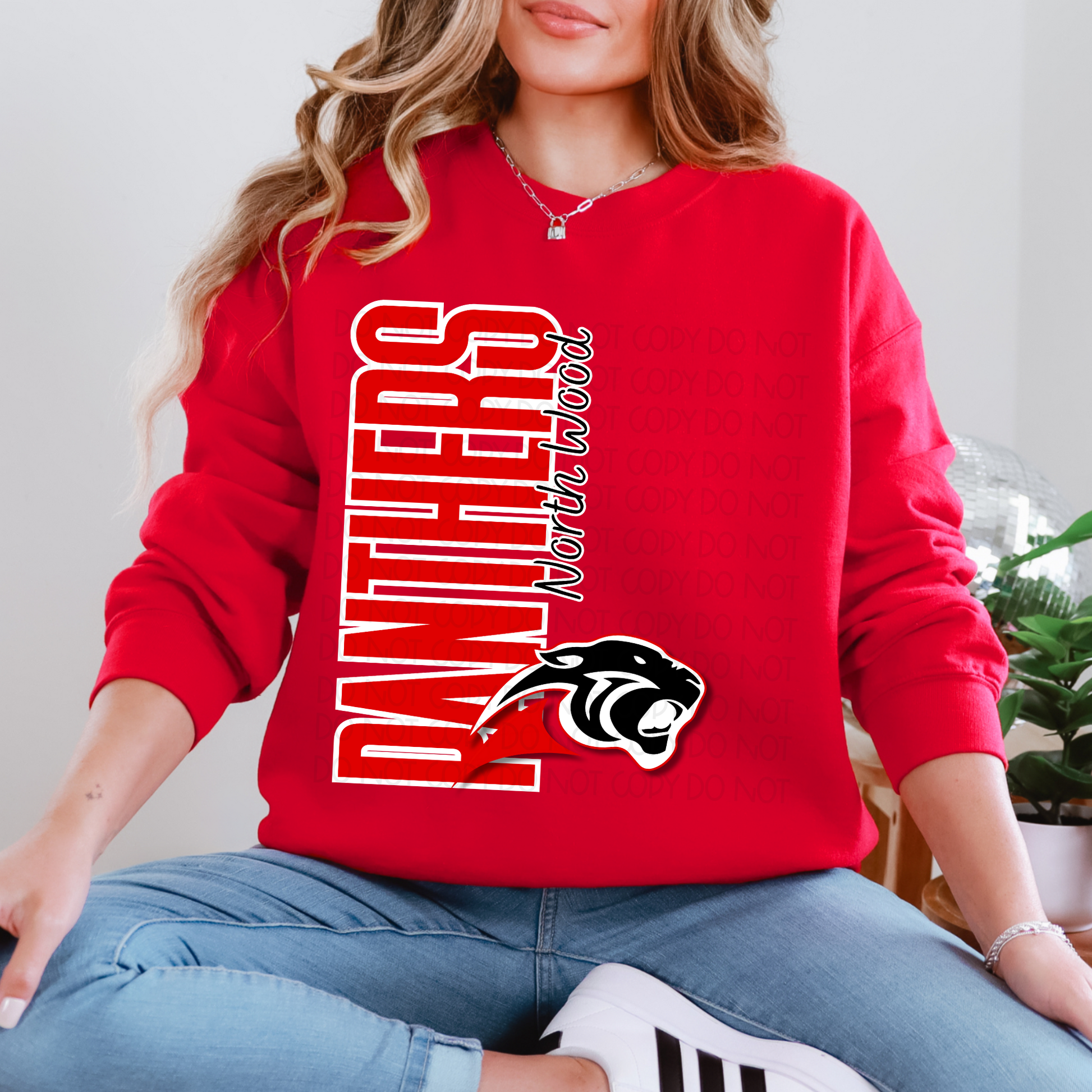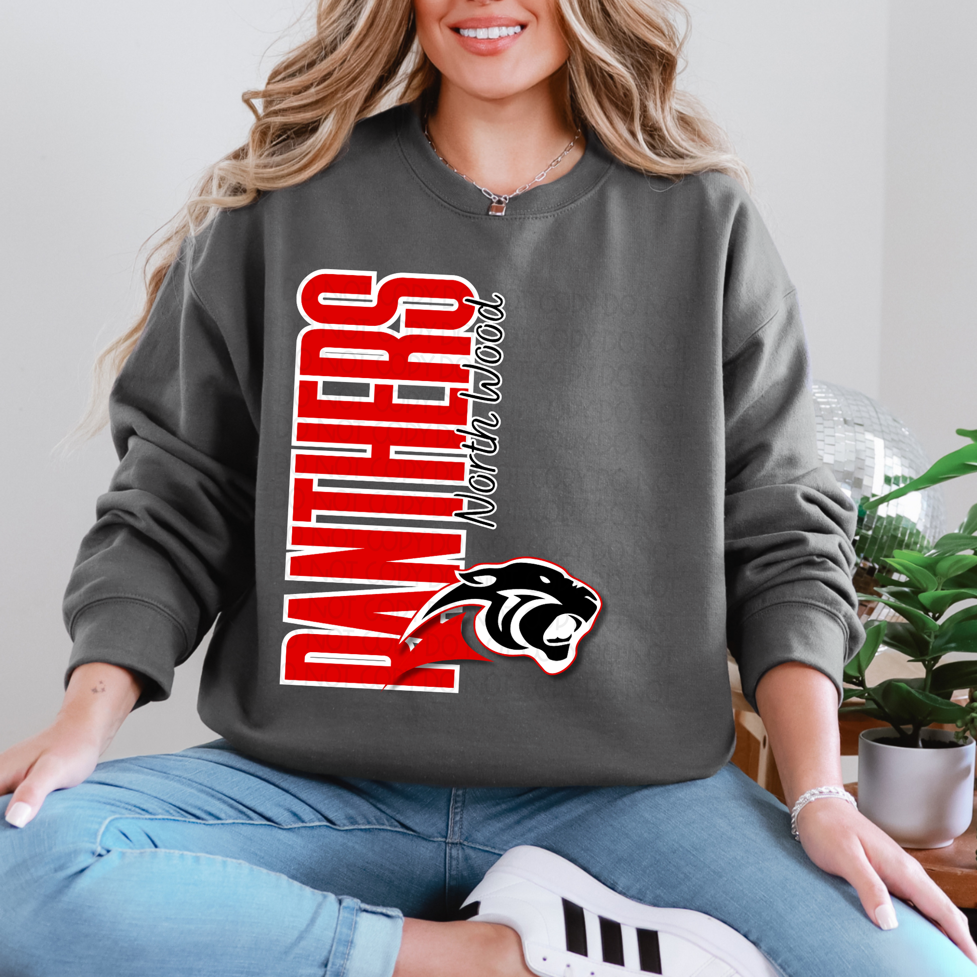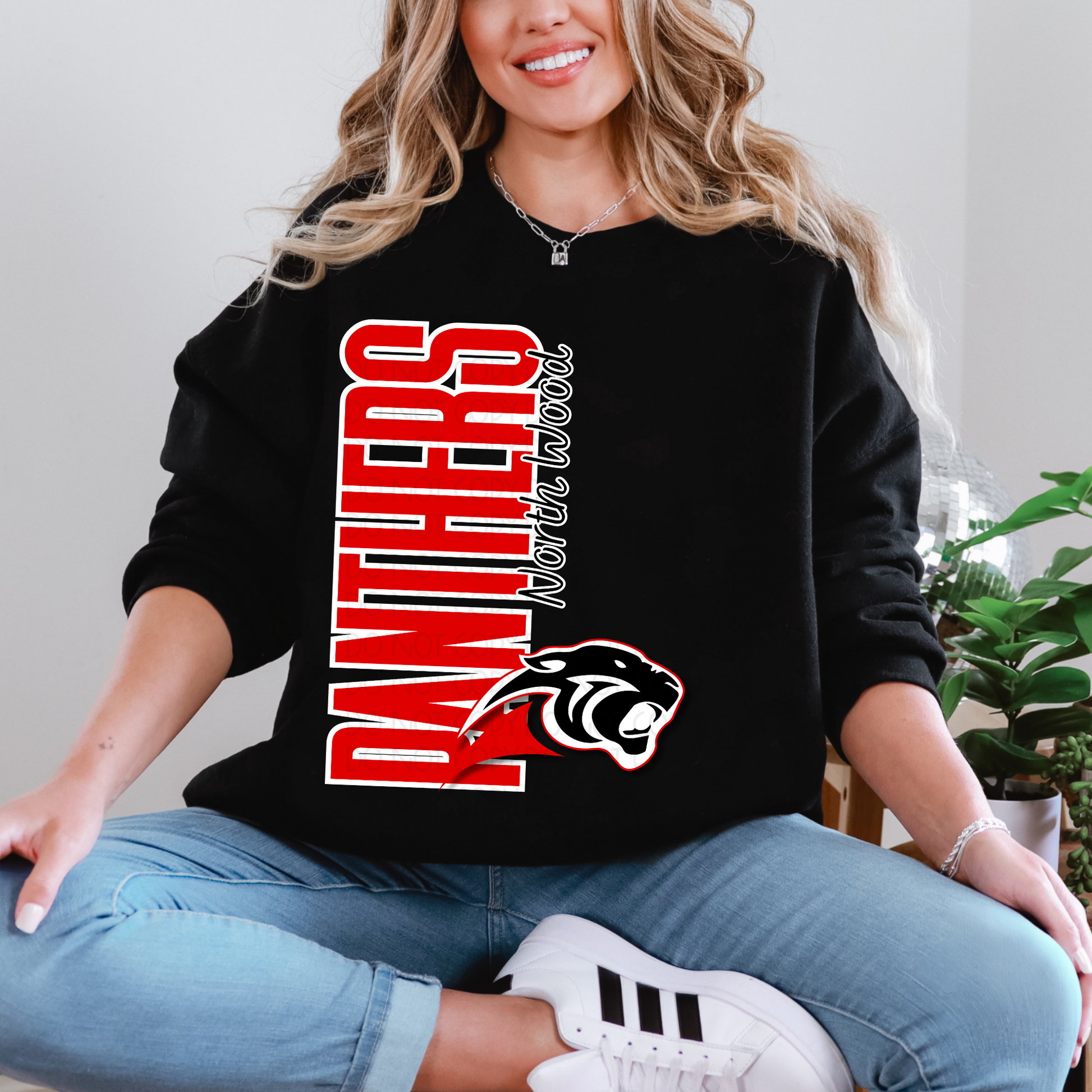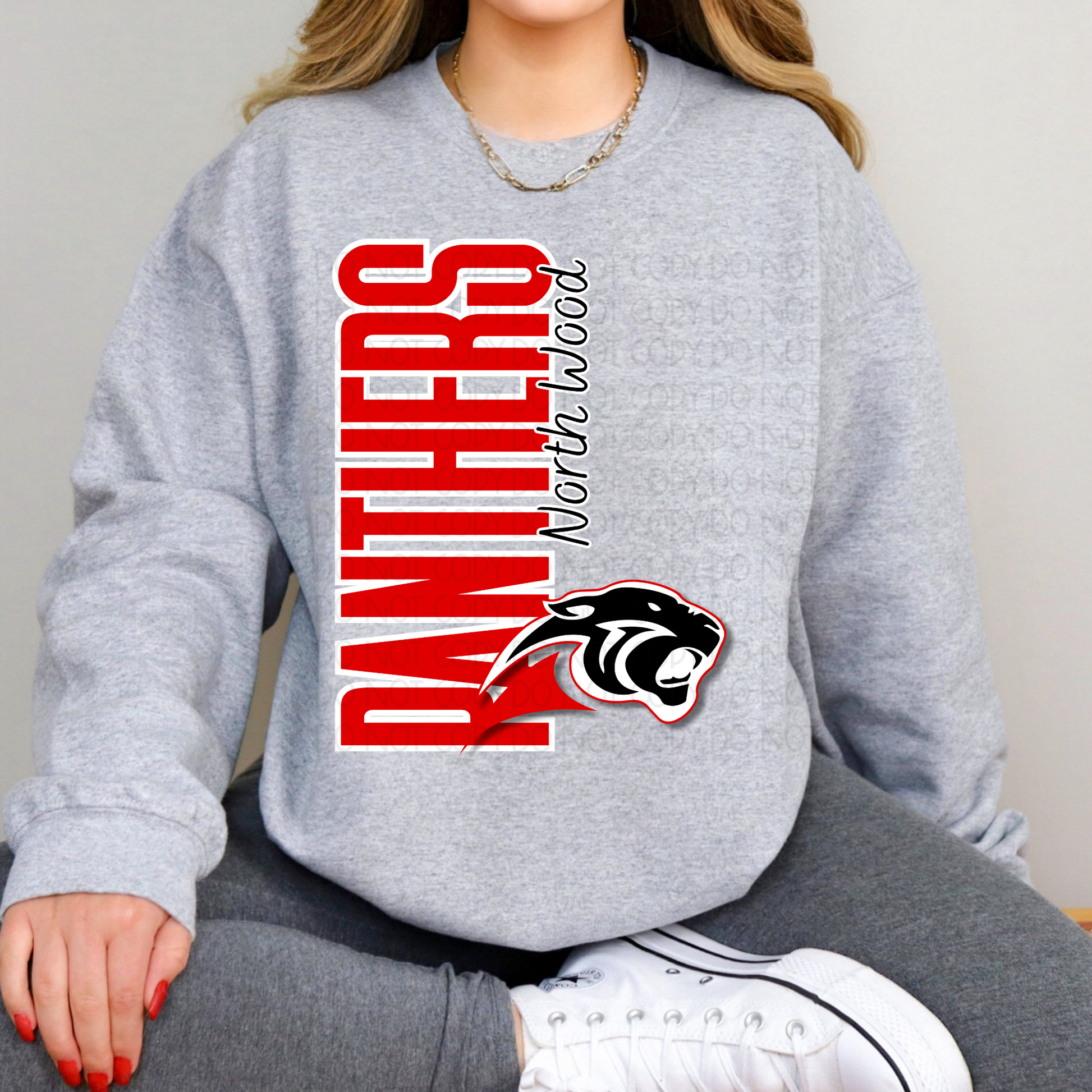 This eye-catching design features bold “Panthers” lettering paired with sleek North Wood script and the fierce Panther logo. A great choice for anyone wanting a clean, modern spirit look.